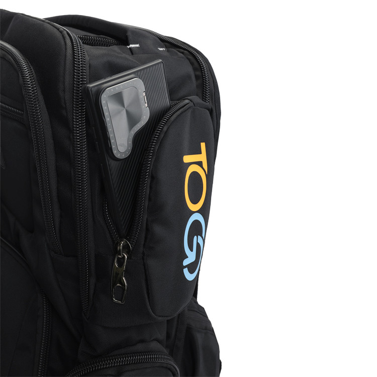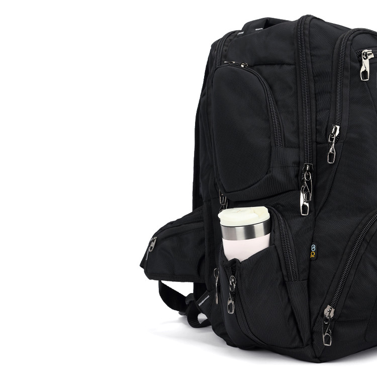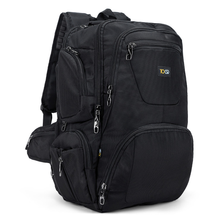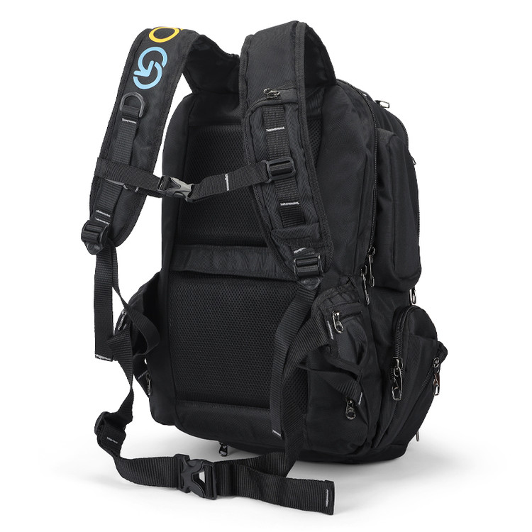 16 جیب-محفظه لپتاپ 5 طرف حباب با پد جداگانه مستحکم-جای عینک-بند اتصال به چمدان- ضد آب-دارای کاور باران-دارای بند کمری و بند سینه-پدهای اسفنجی فراوان-بالشتکهای قابل تنفس روی بندها و پانلهای پشتی