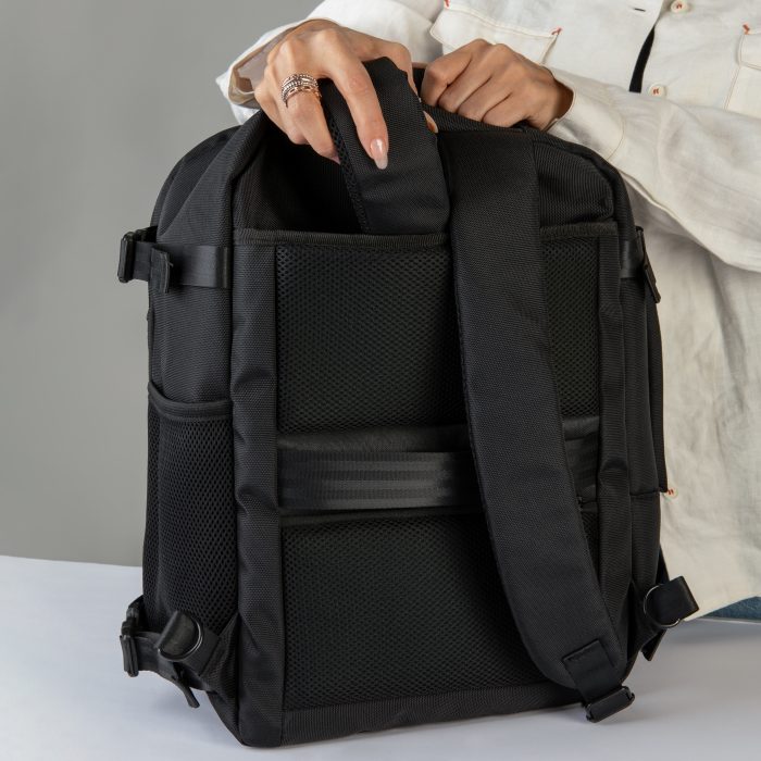 ویژگی : دارای 3 محفظه اصلی بزرگ و 9 جیب داخلی اختصاصی- محفظه لپ‌تاپ 17 اینچی و یک آی‌پد 12.9 اینچی-دارای کاور ضد آب کفش